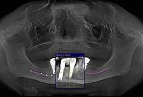 Successful sinus lifts and cortical bone transplant, which were required to build up the upper jaw bone, are also visible on this X-ray. Safe placement of implants would not have been possible without those bone augmentation procedures.